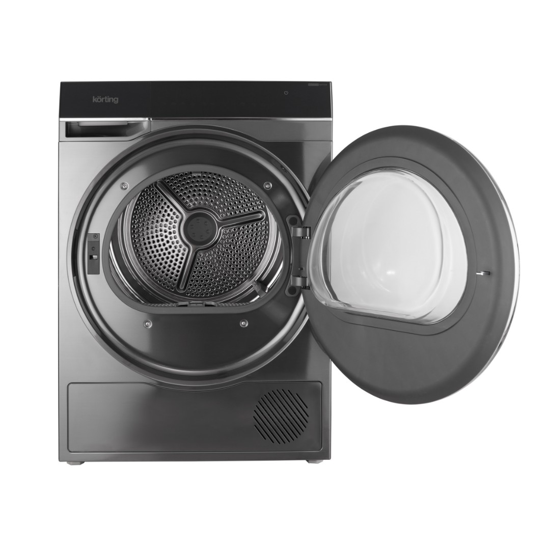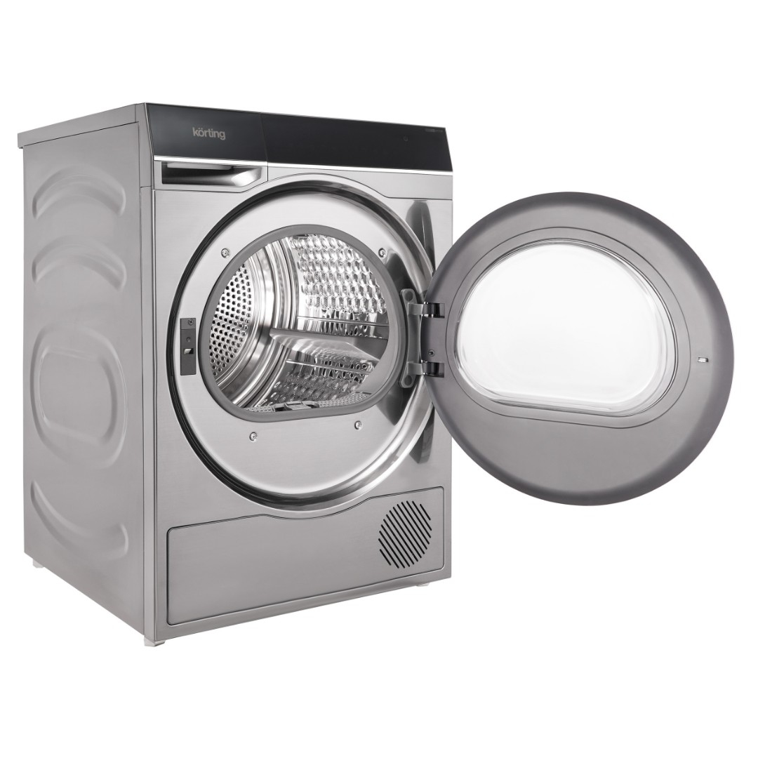 Прибор обладает глубиной 63 см и объемом барабана 116 литров, позволяя загружать до 10 кг белья за один цикл. Сушильная машина отличается эргономичным дизайном и интуитивно понятным интерфейсом. Цветной LED-дисплей упрощает выбор программы: достаточно коснуться иконки с изображением подходящего типа ткани.