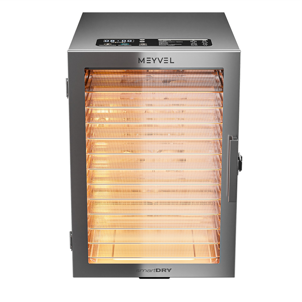 Meyvel MDH12-1S (Нержавеющая Сталь) (Inox) на 10 кг — это мощный дегидратор из нержавеющей стали для бережного высушивания продуктов без потери их вкуса, цвета и пользы. Он функционален, как профессиональная техника, и удобен, как простое домашнее устройство.