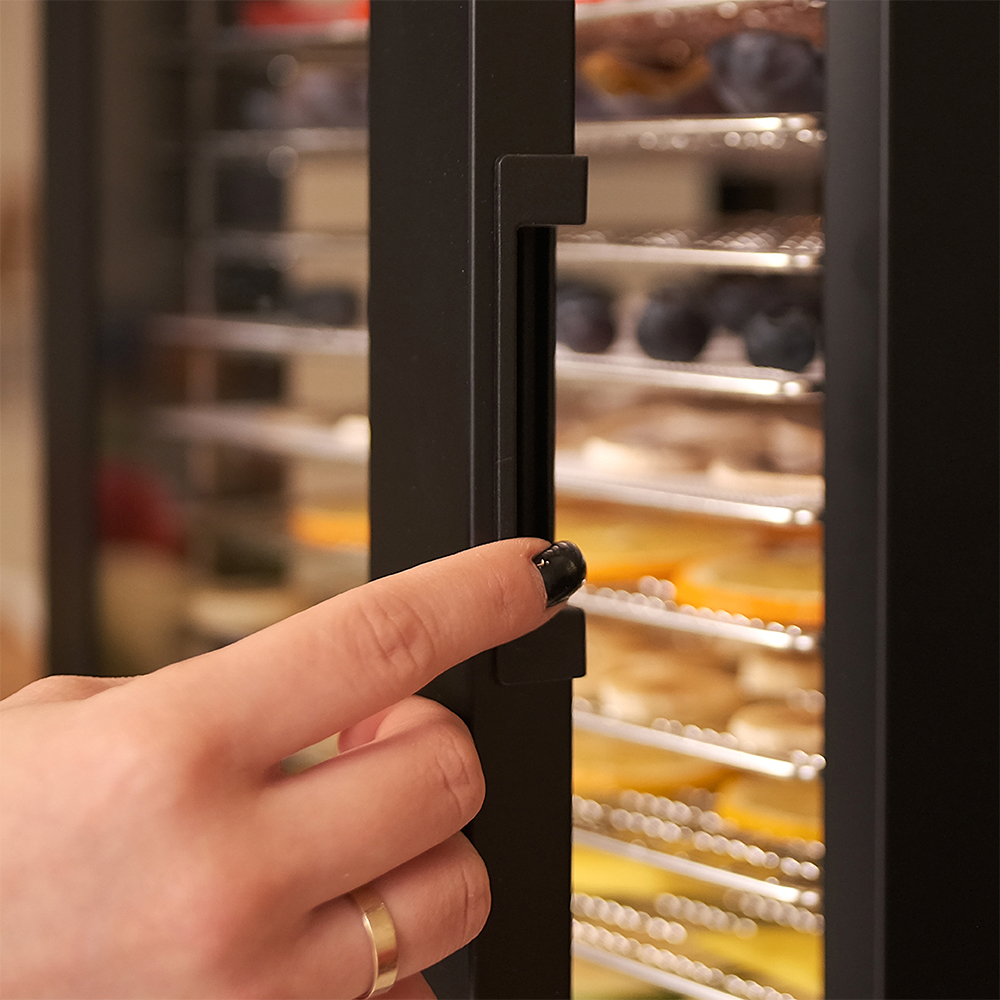 Дегидратор оснащён сенсорной панелью, которая значительно упрощает процесс настройки. Никаких механических рычагов и лишних кнопок — всё управление сосредоточено в одном месте.