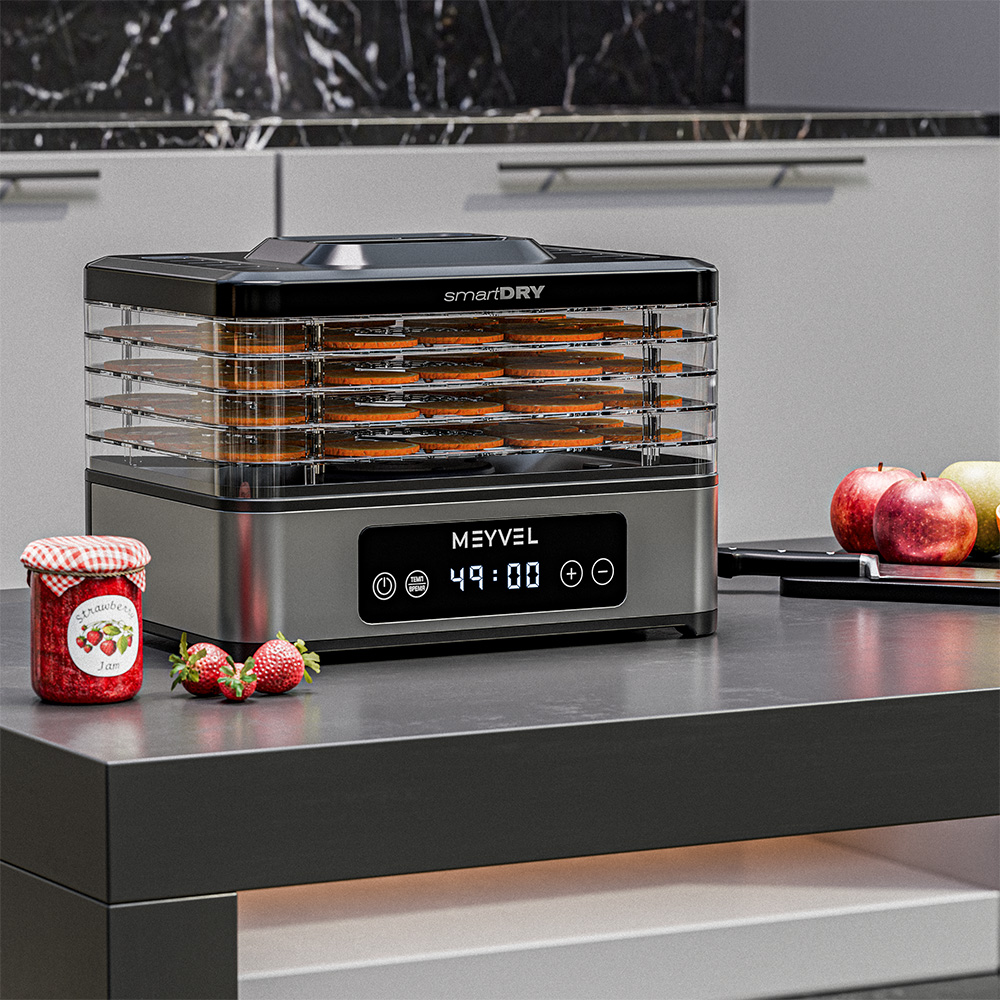 Дегидратор Meyvel MDH5-1P (Black) создан для тех, кто ценит натуральные продукты и хочет готовить полезные заготовки без консервантов и сахара. С ним легко сушить фрукты, овощи, травы, мясо, грибы или готовить домашние снеки и пастилу. Всё под вашим контролем: температура, время и результат.