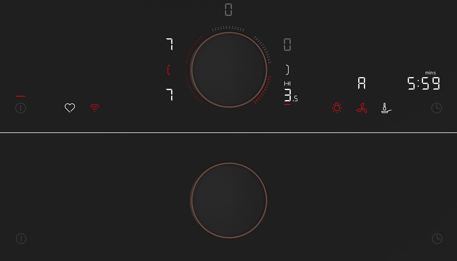 Управление осуществляется с помощью сенсорного слайдера, который обеспечивает плавную регулировку температуры. Панель также поддерживает функцию автоматического распознавания посуды (AutoSense), благодаря которой конфорка включается только при наличии подходящей посуды и автоматически отключается при ее снятии.