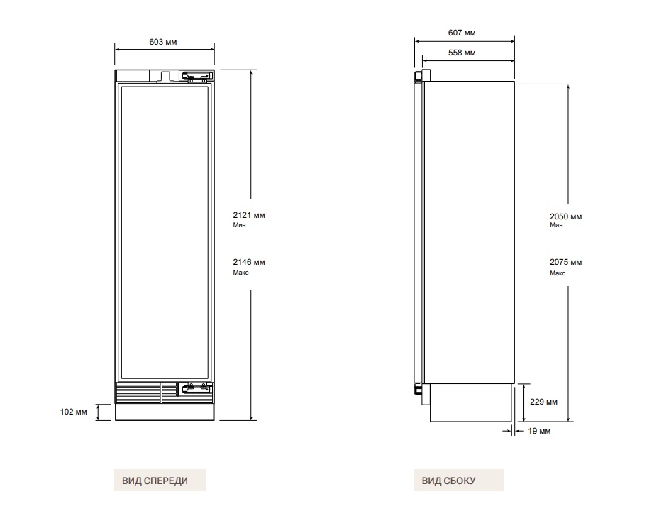 - Общая высота: 2121 мм ~ 2146 мм