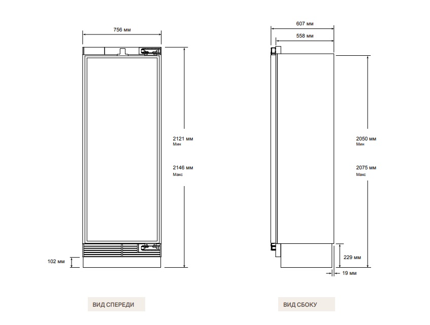 - Общая высота: 2121 мм ~ 2146 мм
